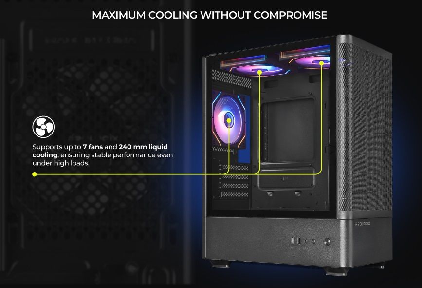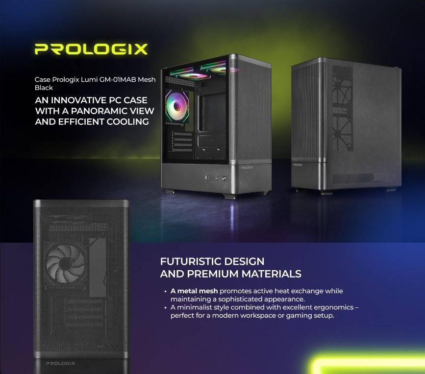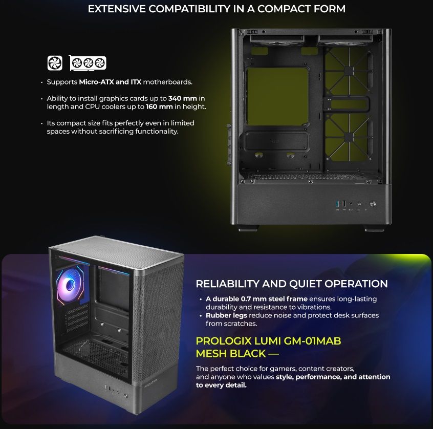 Lumi GM-01MAB Mesh Black: Midi Tower, MicroATX/ITX, 3 x 120 mm ARGB Fans Included, 120 mm Rear& 280 mm Top Radiator Support, Tempered Glass