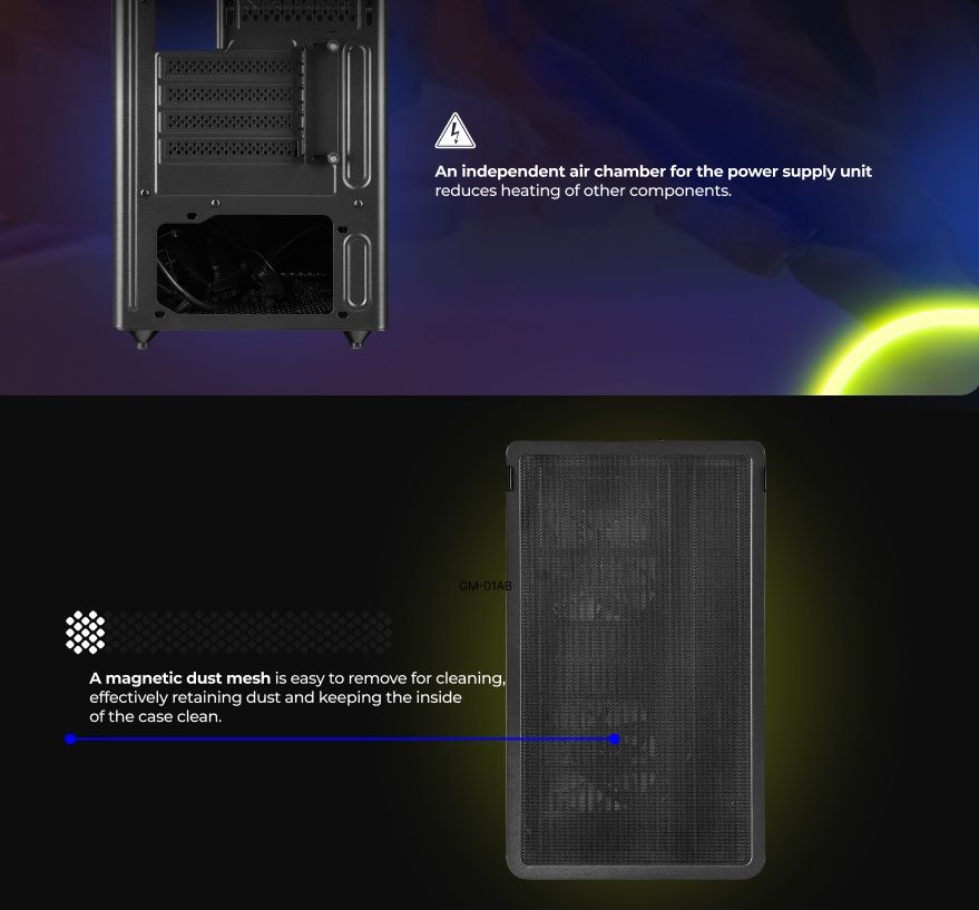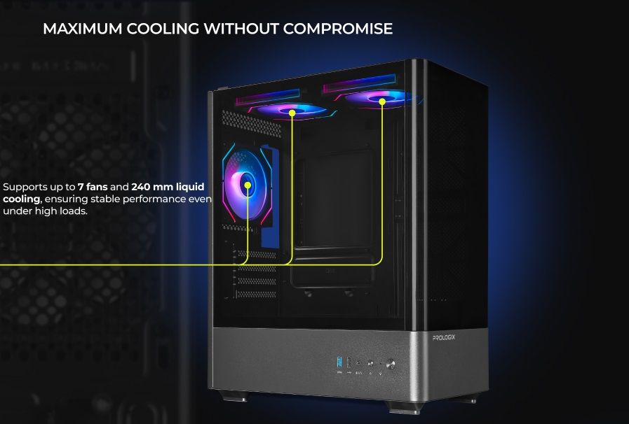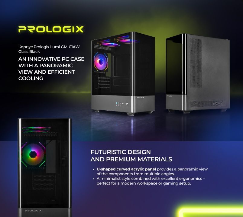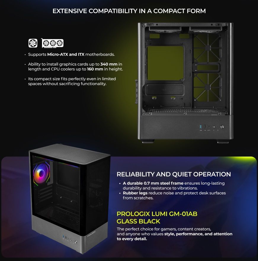 Prologix Lumi GM-01AB Glass Black: Midi Tower, MicroATX/ITX, 3 x 120 mm ARGB Fans Included, 120 mm Rear& 280 mm Top Radiator Support, Tempered Glass